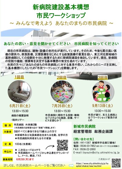 皆さんの「あなたのまちの市民病院」に対する意見や思い、これからのニーズを反映した基本構想にしたいため「市民ワークショップ」を開催します。