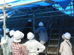 ただ、次の荒天に備えて、屋根に掛けたシートはすべて外すことなく、必要な個所だけを剥がして作業を進めることになりました。