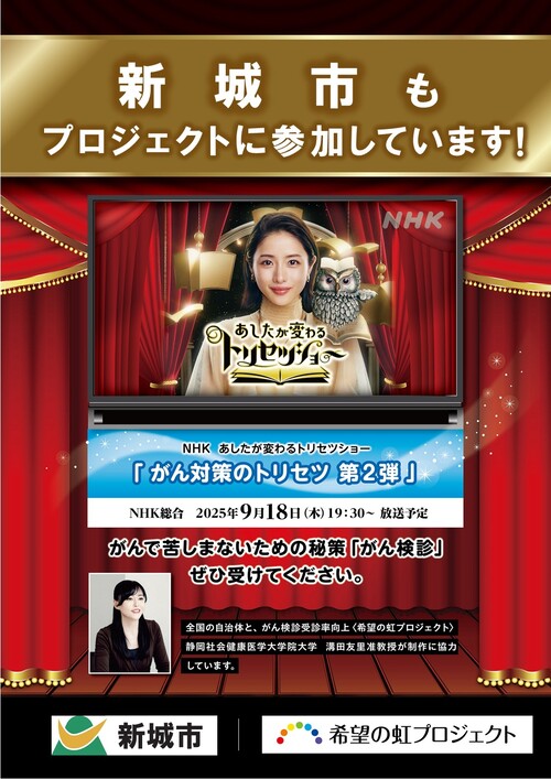 NHK、全国自治体、希望の虹プロジェクトの協働による「がん撲滅キャンペーン2025」に新城市も参加しています。
