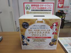 今回設置する回収ボックスで集められた携帯電話・スマートフォンについては、メダル製作に活用されることになりますので、ご協力をお願いします。