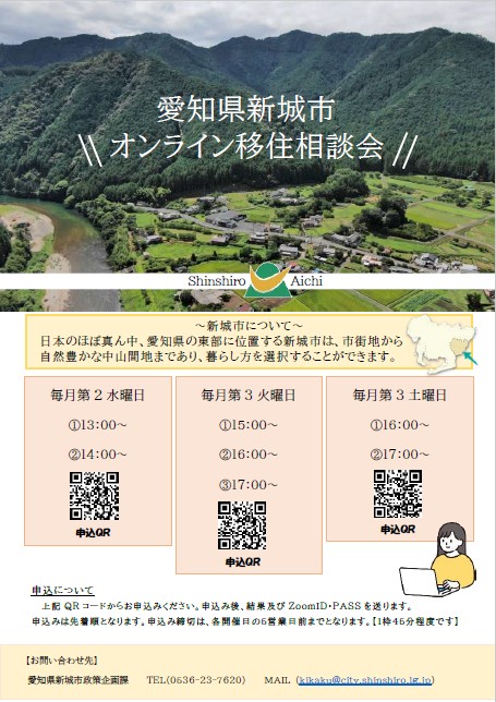 移住を検討している方、田舎暮らしに興味がある方、新城市のことをもっと知りたい方は、ぜひお申し込みください。