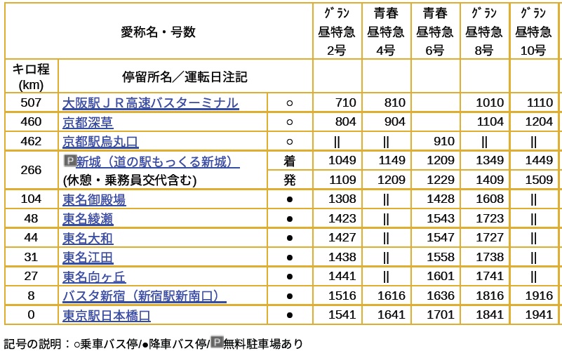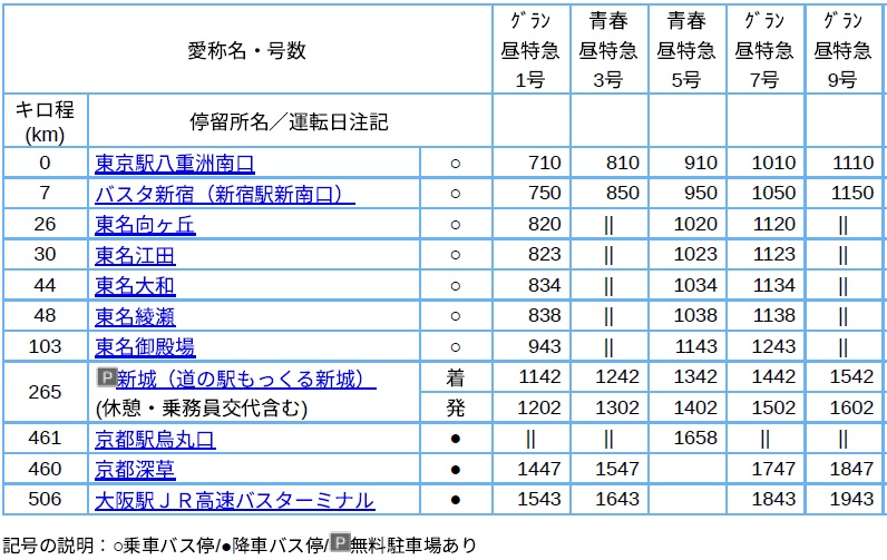 最新の時刻表、運休情報は、ジェイアールバスホームページを参照してください。