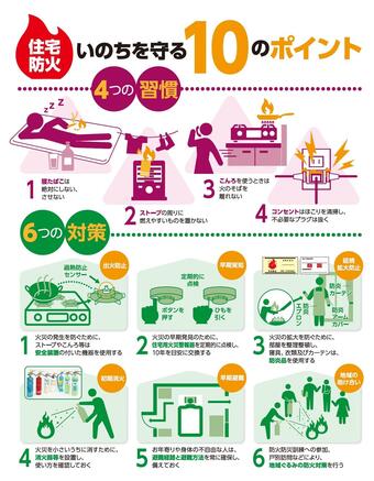 いのちを守るために、日頃から取り組んでほしい「住宅防火 いのちを守る 10のポイント」を紹介します。