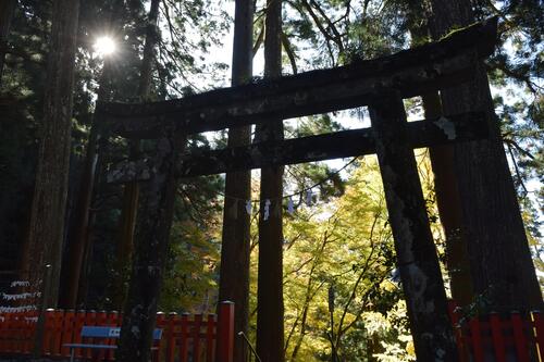 鳳来寺山表参道の石段を登り、途中にある鳳来寺の山門。