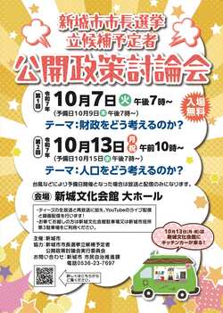 令和7年度新城市市長選挙立候補予定者公開政策討論会の開催日程は、次のとおりです。