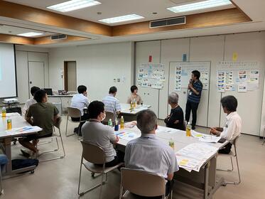 担当課からの公共施設の現状・課題についての情報共有を始めとして、参加者同士のアイスブレイクやグループワークで地域でやってみたいことの意見出しを行いました。