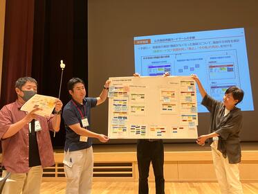 グループワークでは「公共施設再編カードゲーム」を実施し、設定された再編テーマをもとに、施設カードや機能カードを使いながら意見交換を重ね、拠点ごとの「再編プラン」を作成しました。